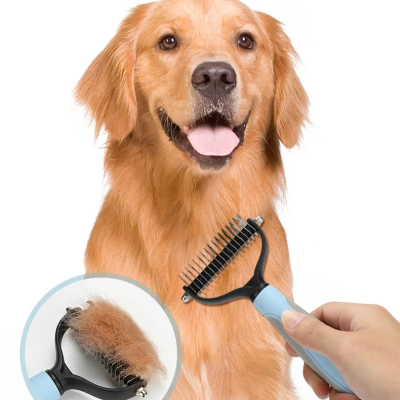 Name: Peine con nudo abierto de doble cara para mascotas, herramienta de cepillado y caída de pelo para perros, peine para depilación de gatos, cepillo de doble cara de acero inoxidable, piel larga mate